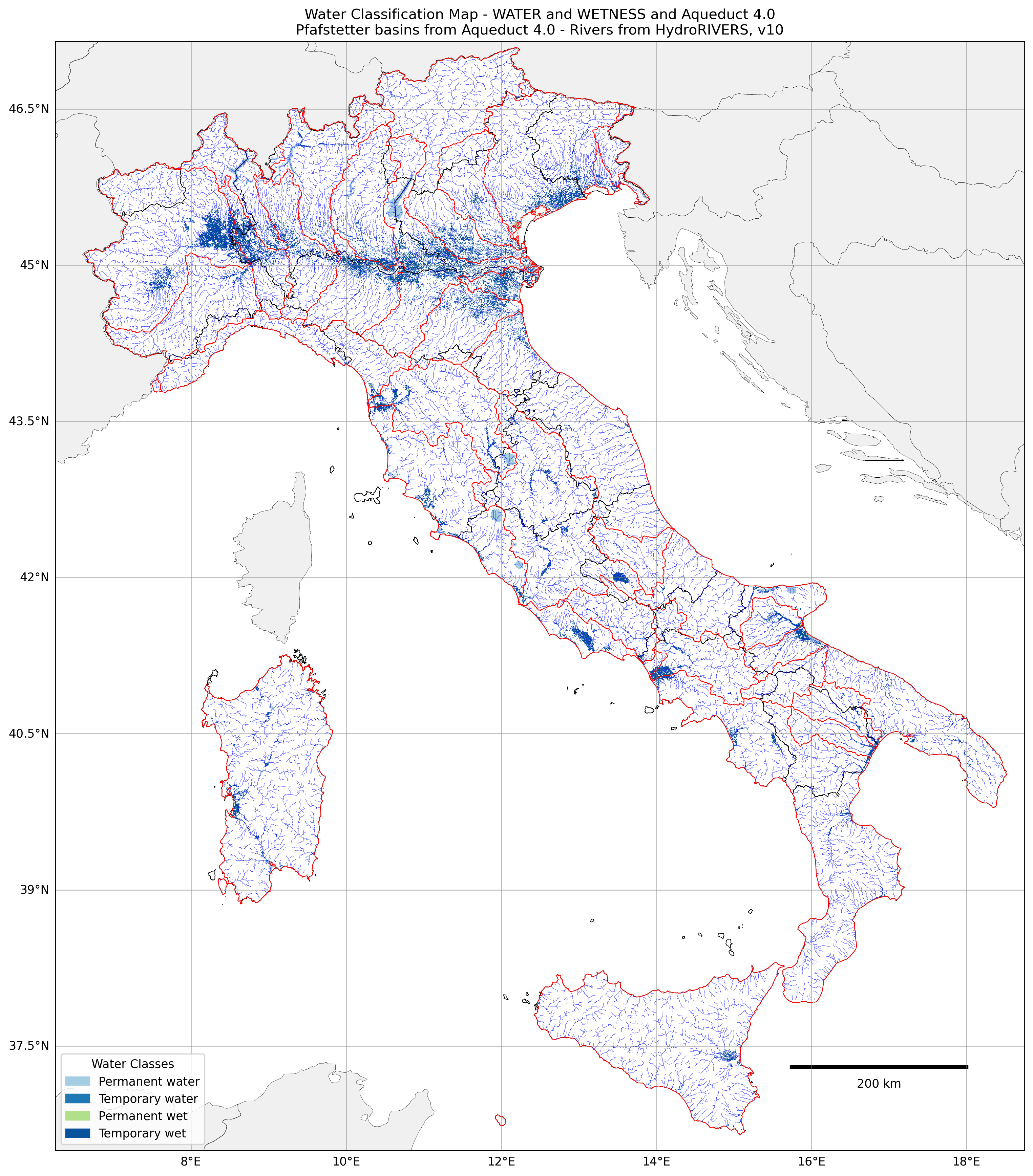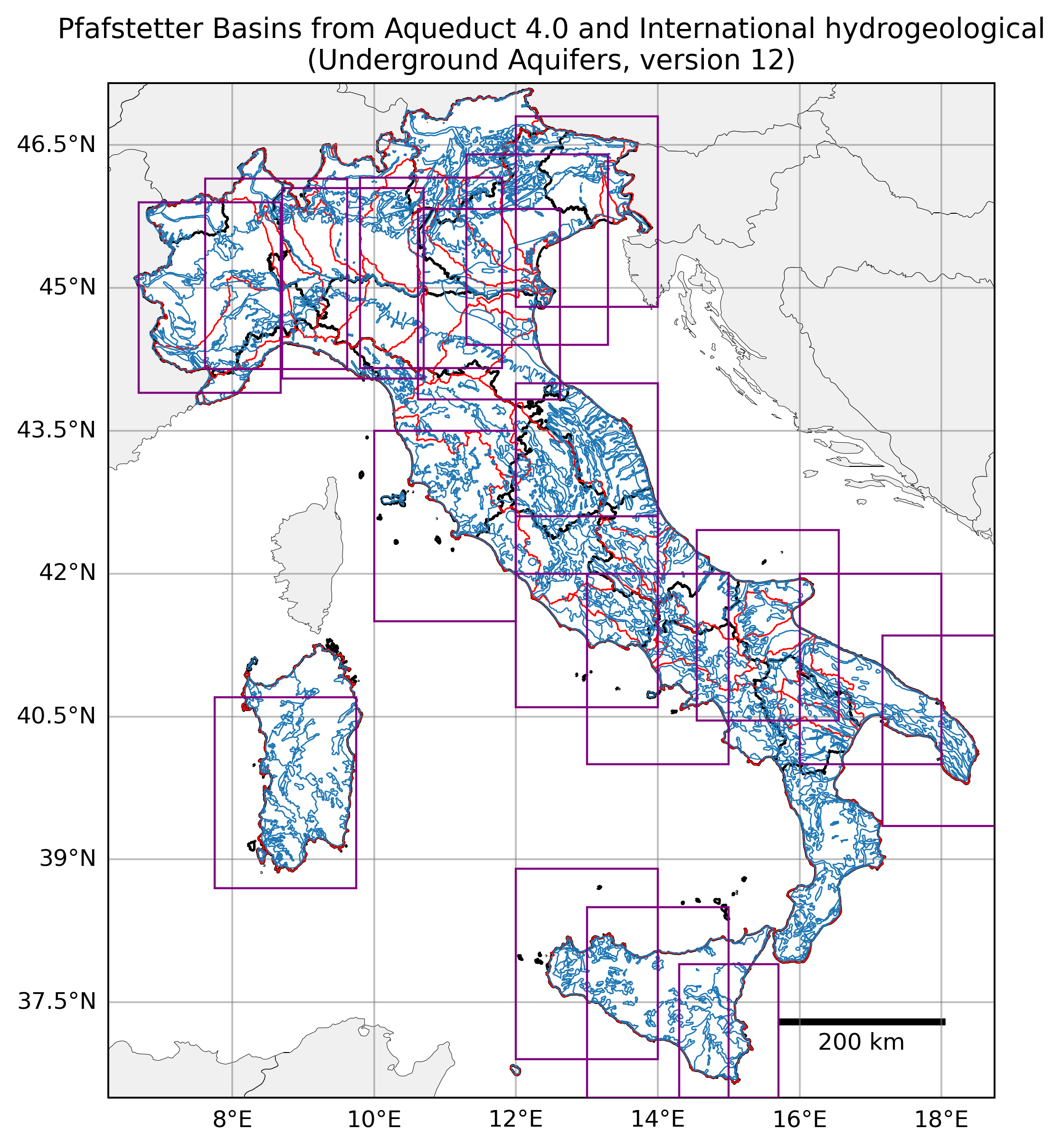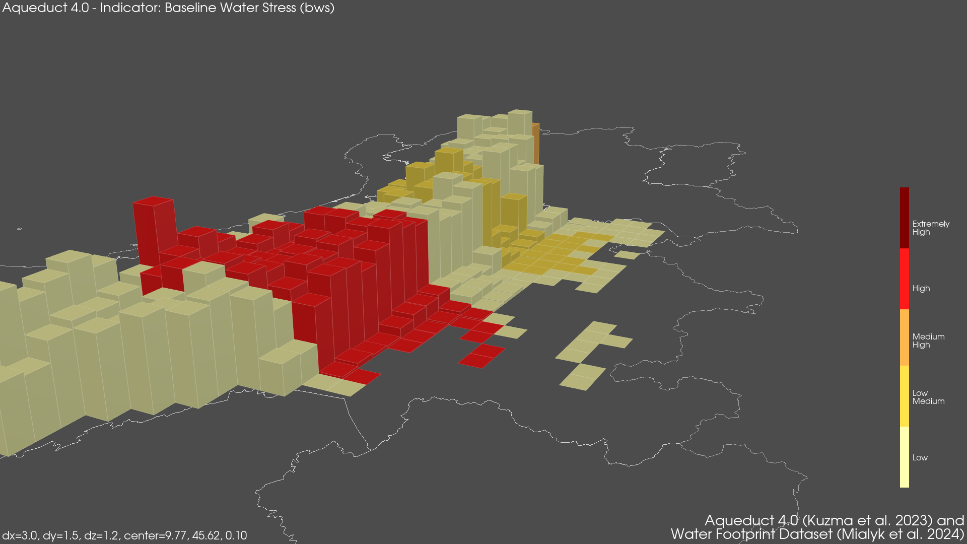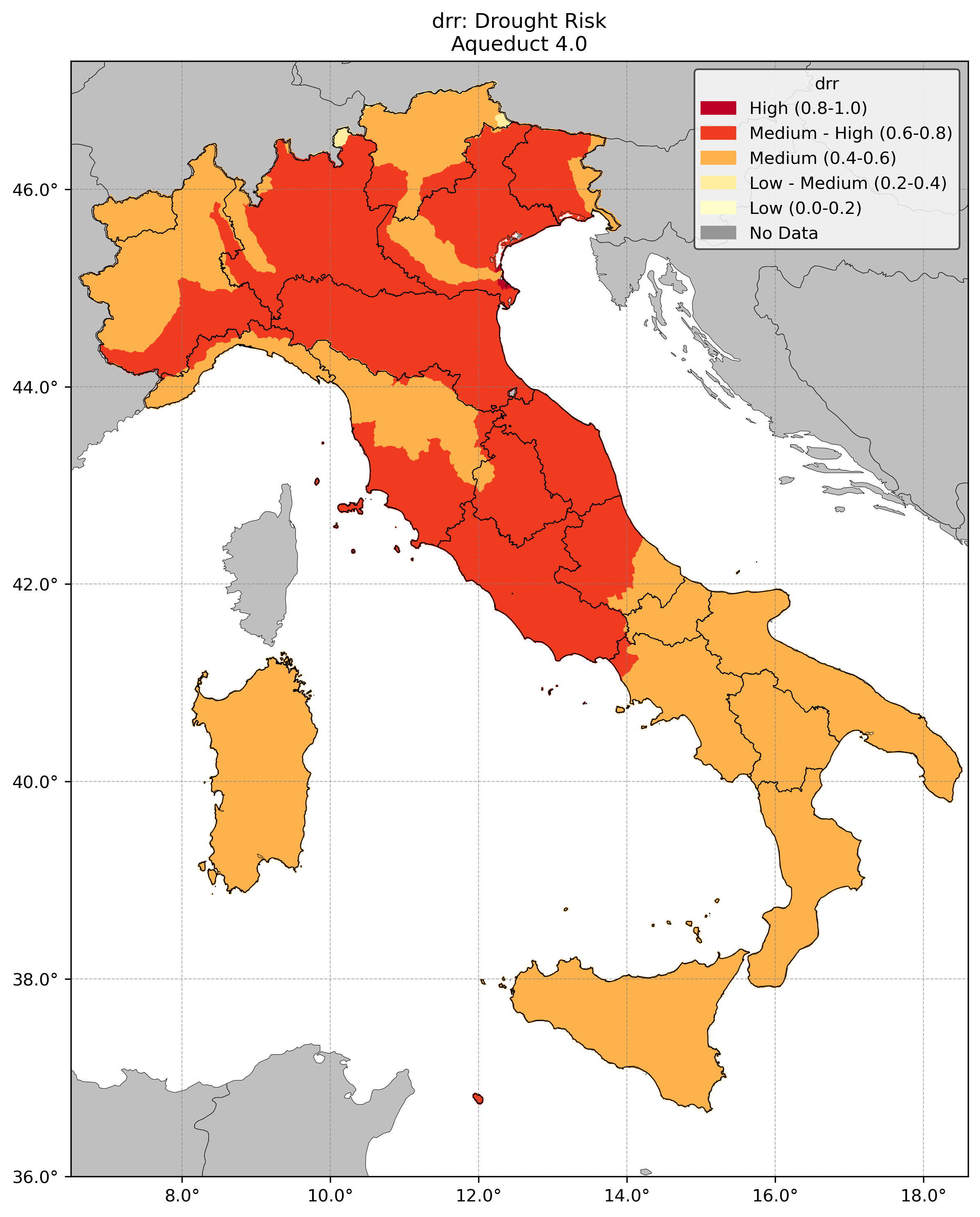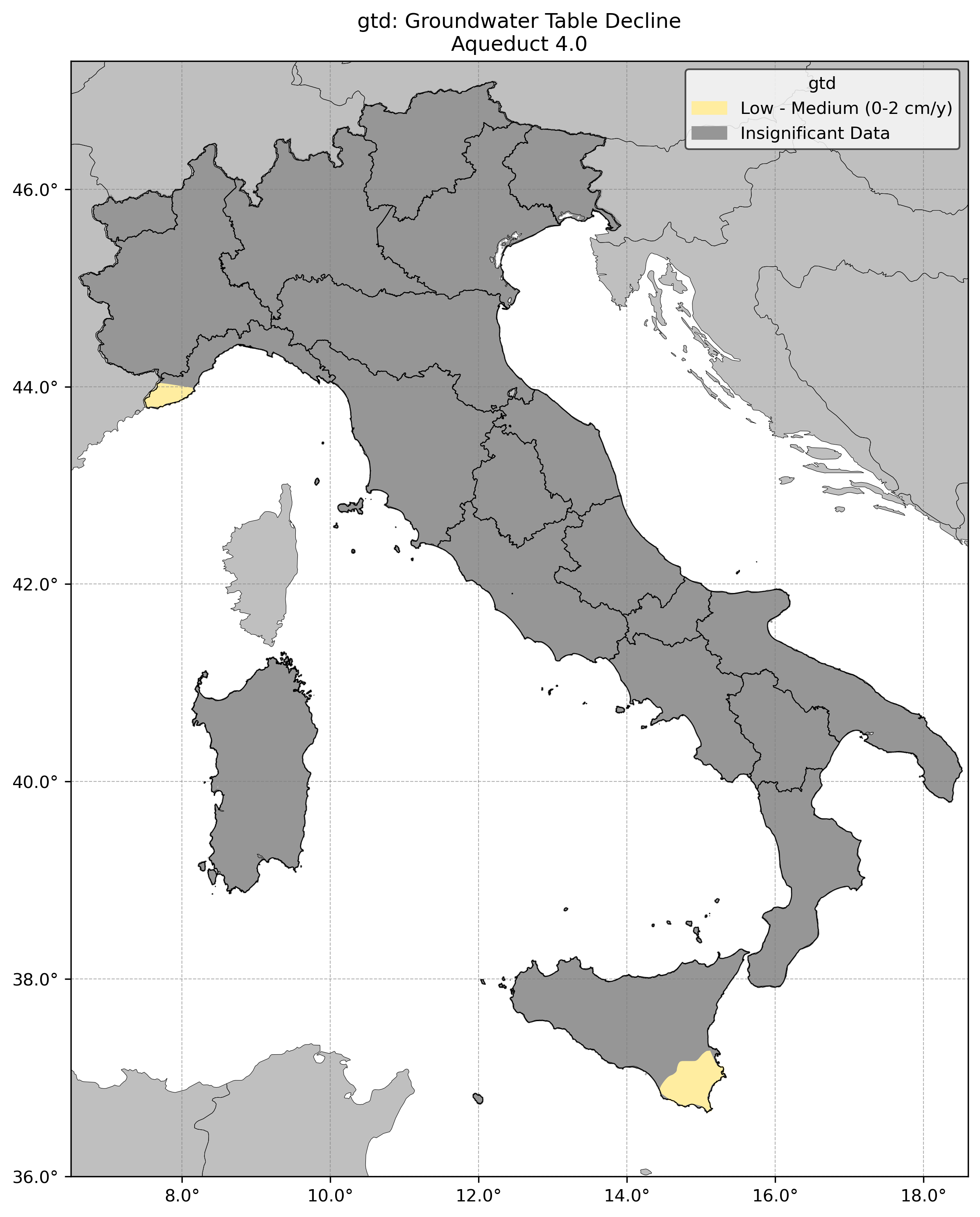 Regional Isometric Maps for Italy showing Water Stress, Drought Risk and Grounwater Table Decline