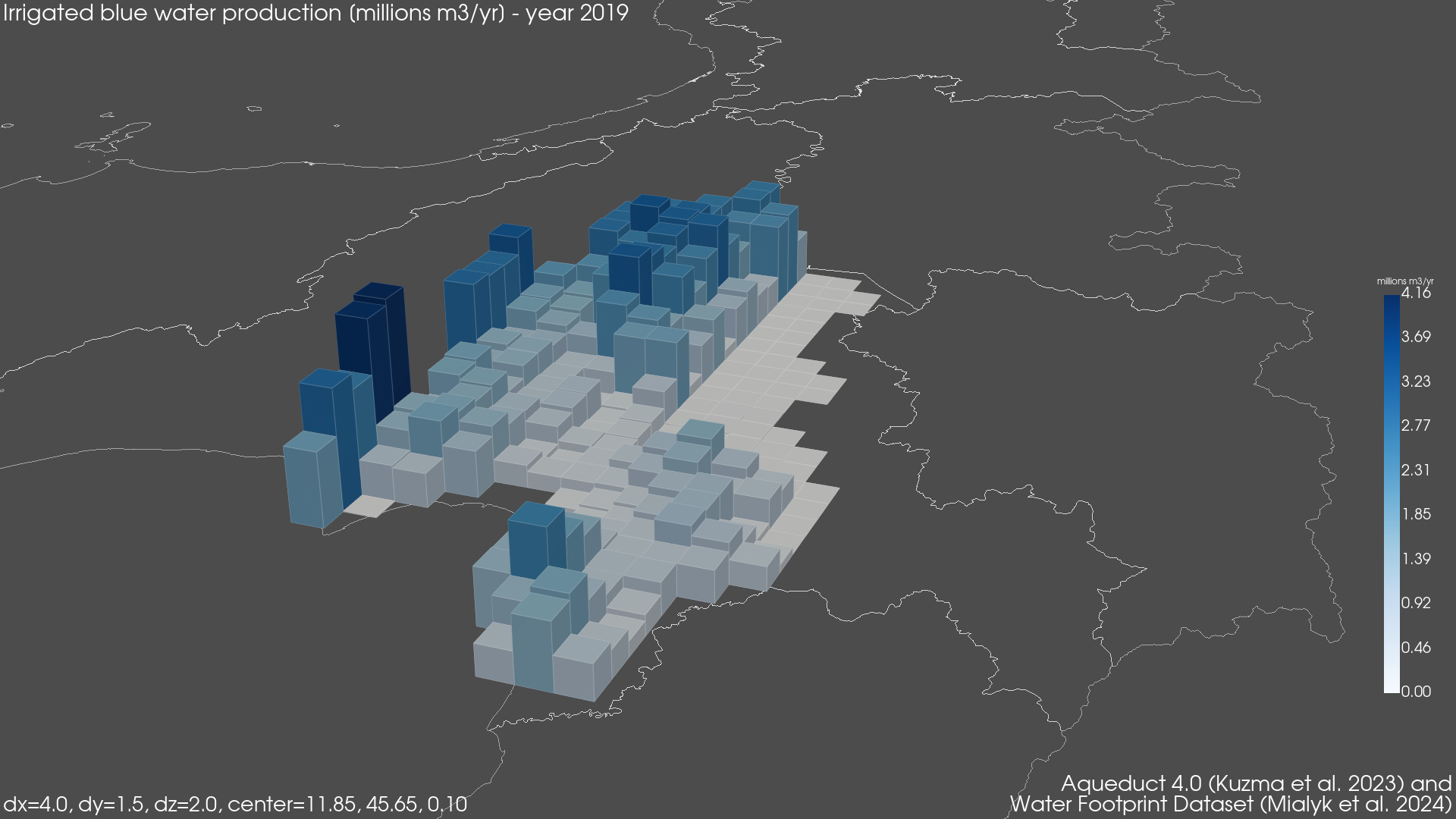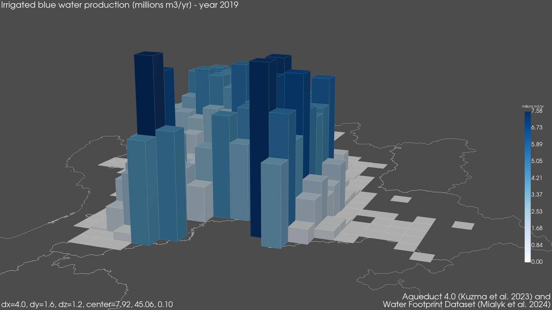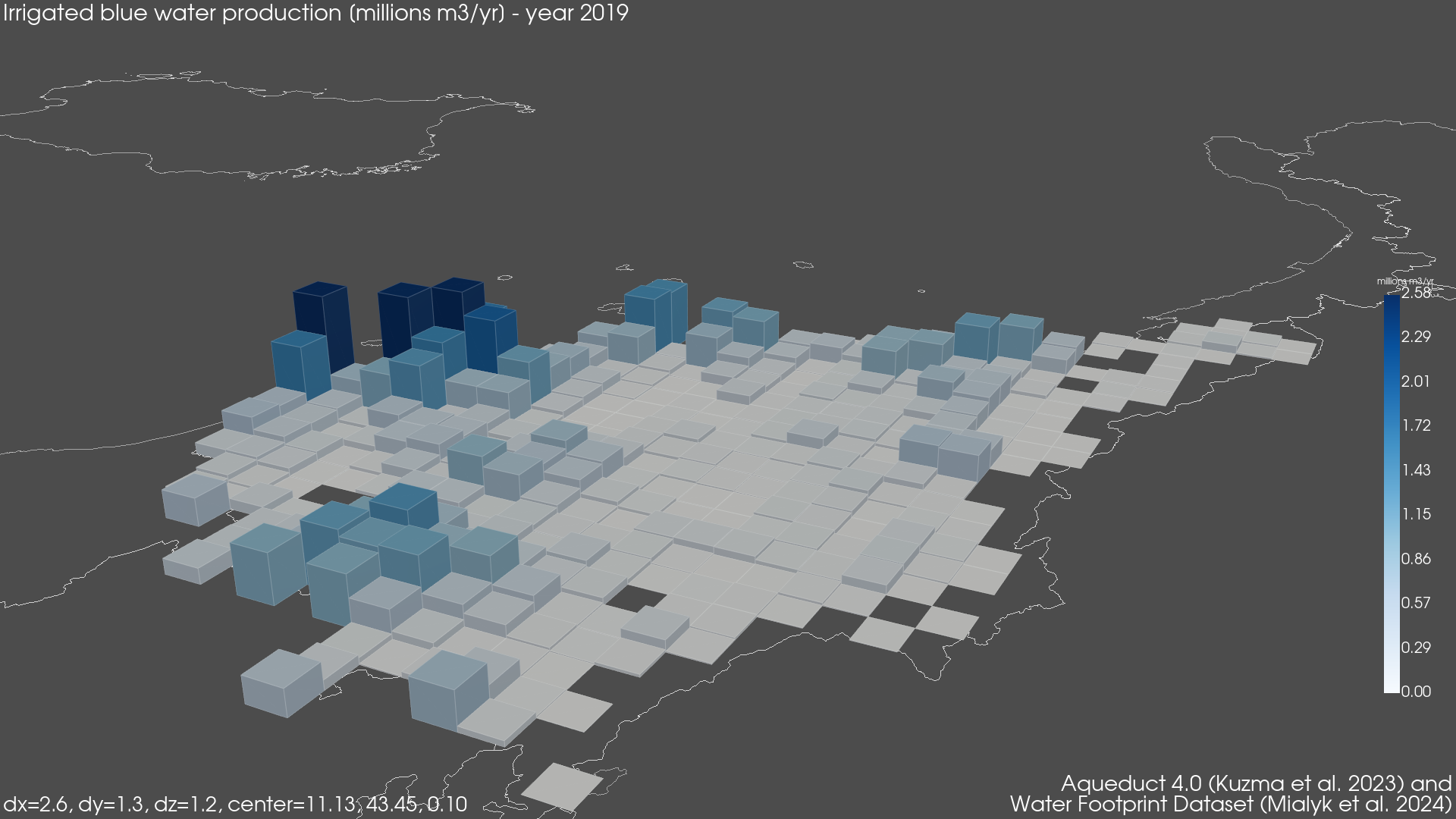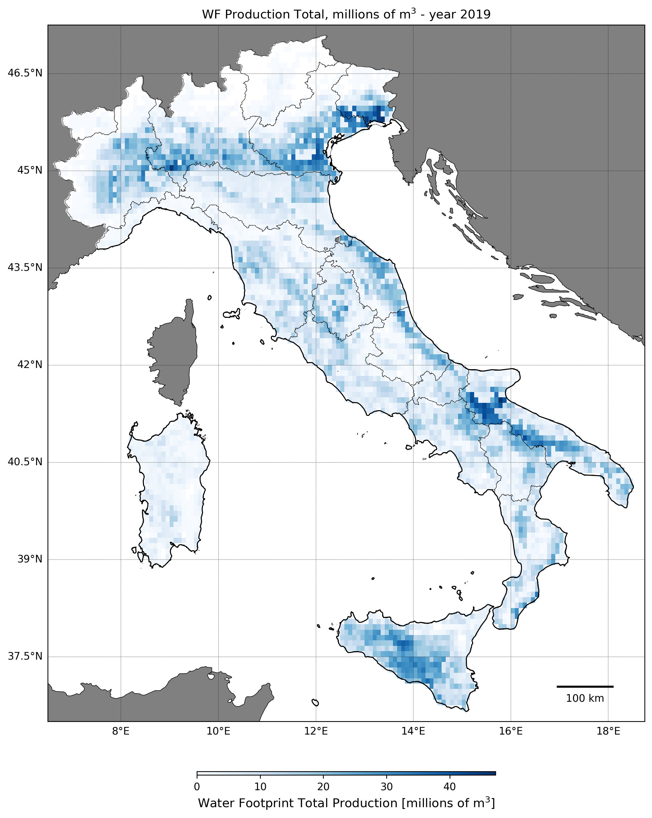 Regional Isometric Maps for Italy showing Blue Irrigated Water Footprint
