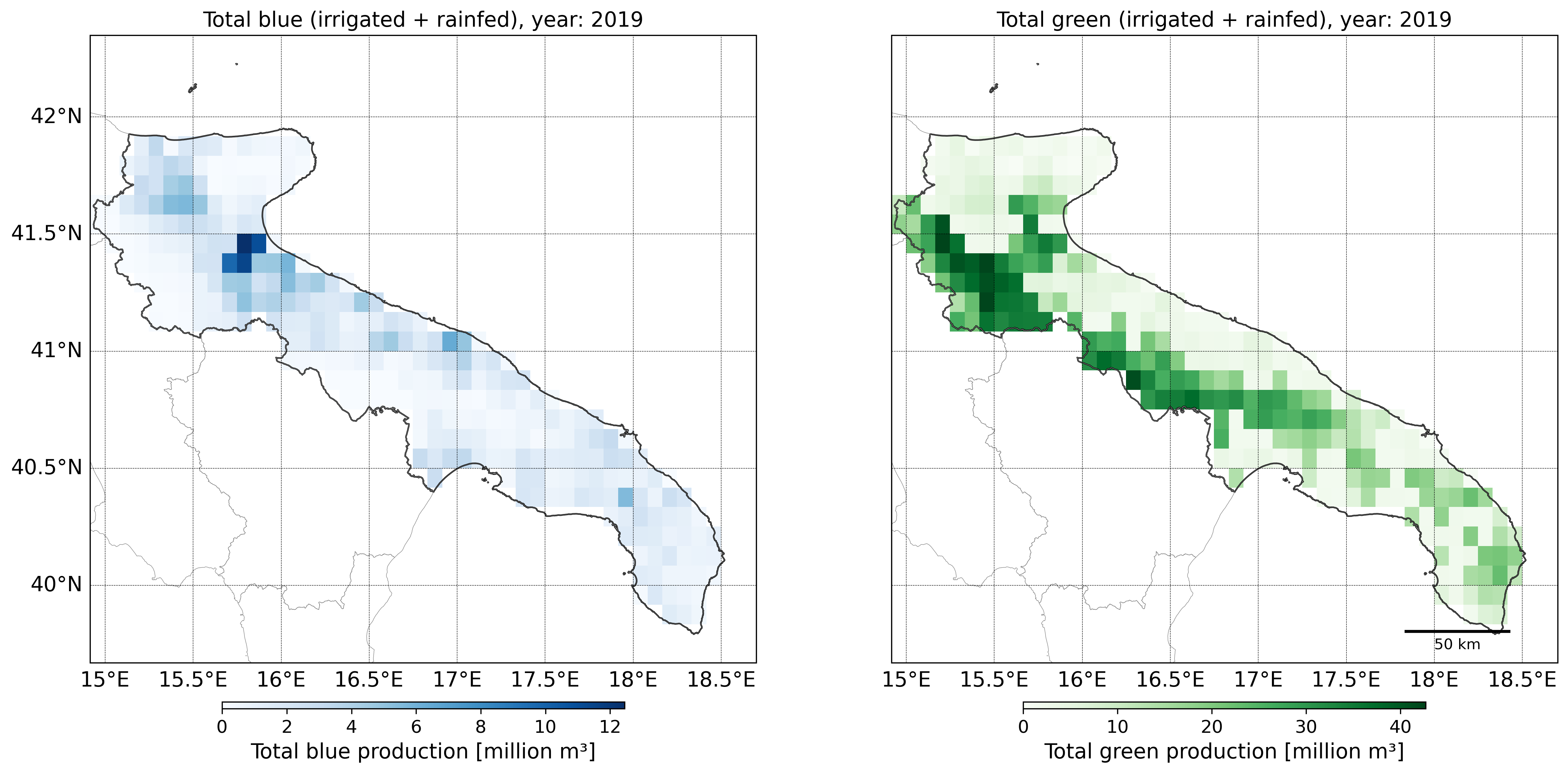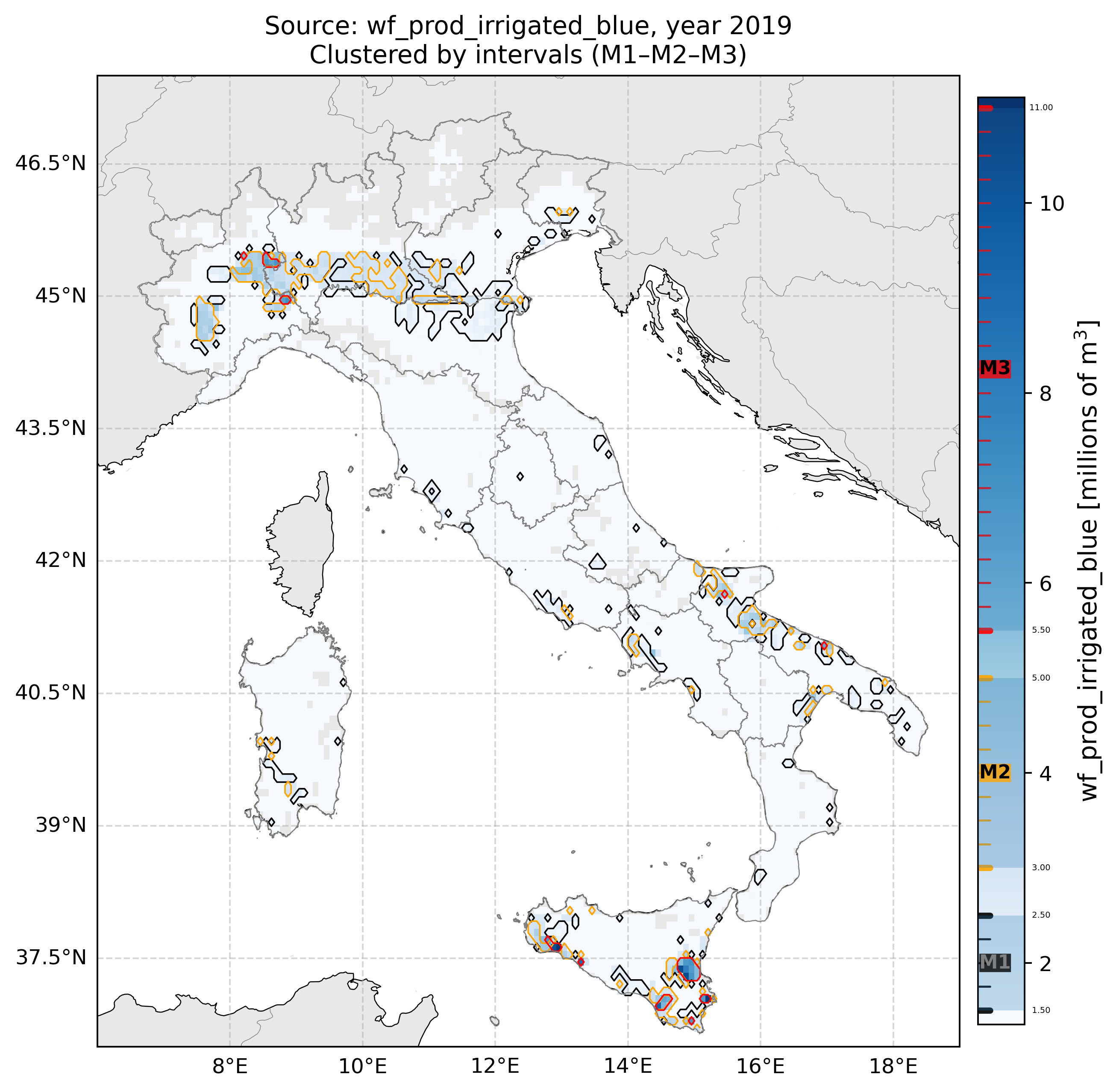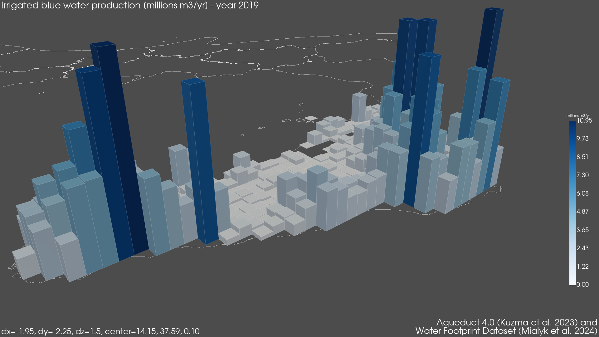 Regional Isometric Maps for Italy showing Blue Irrigated Water Footprint