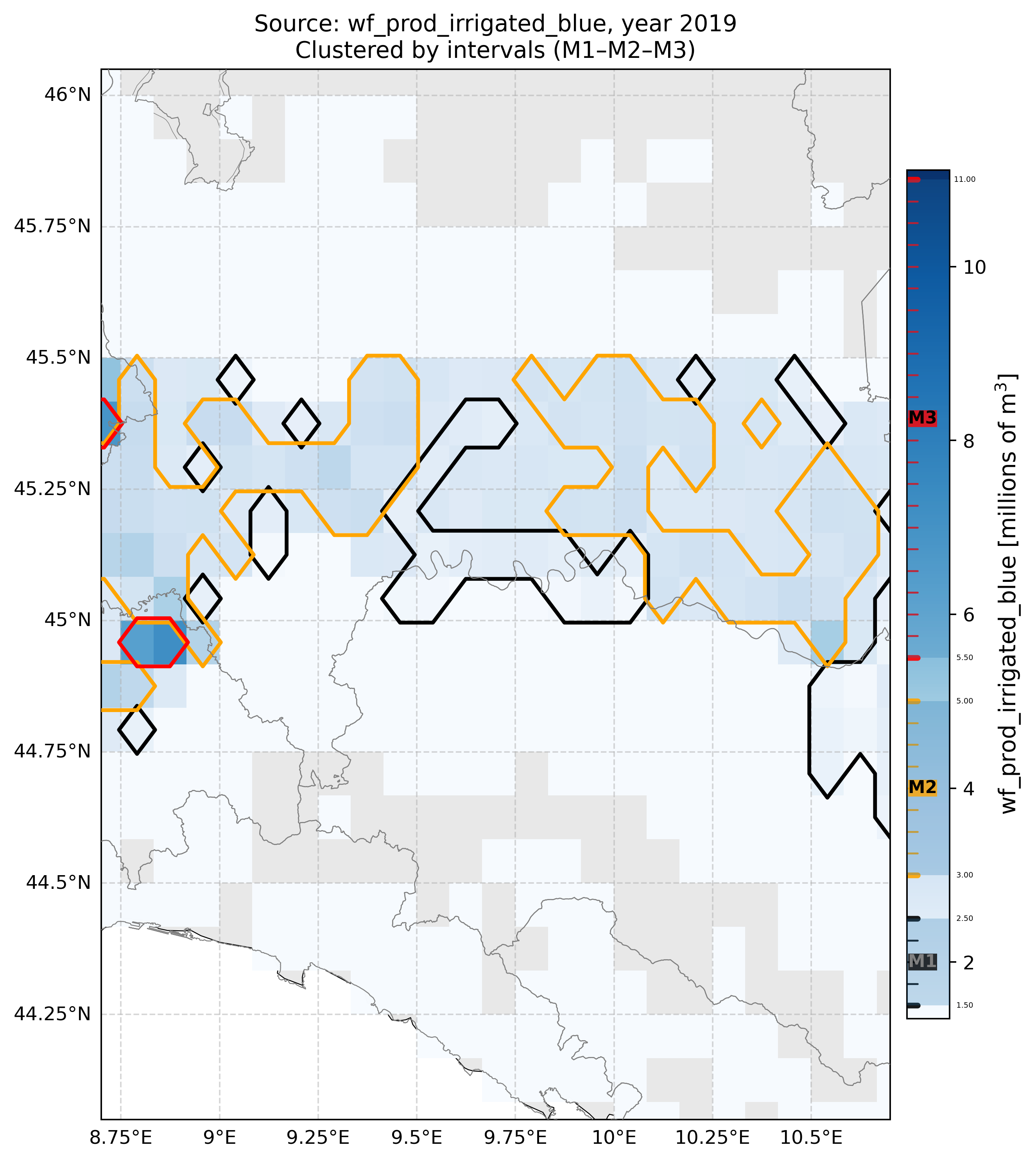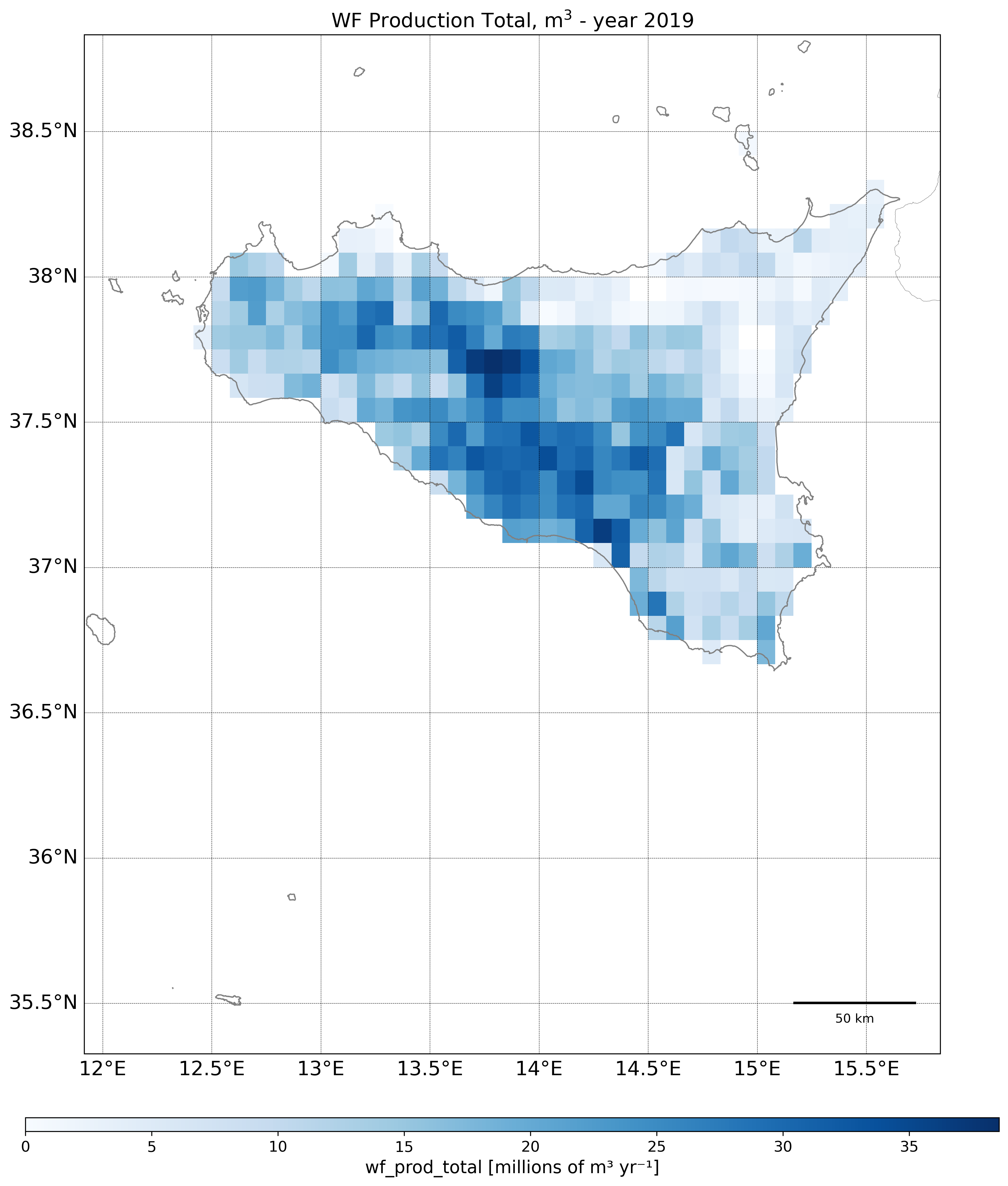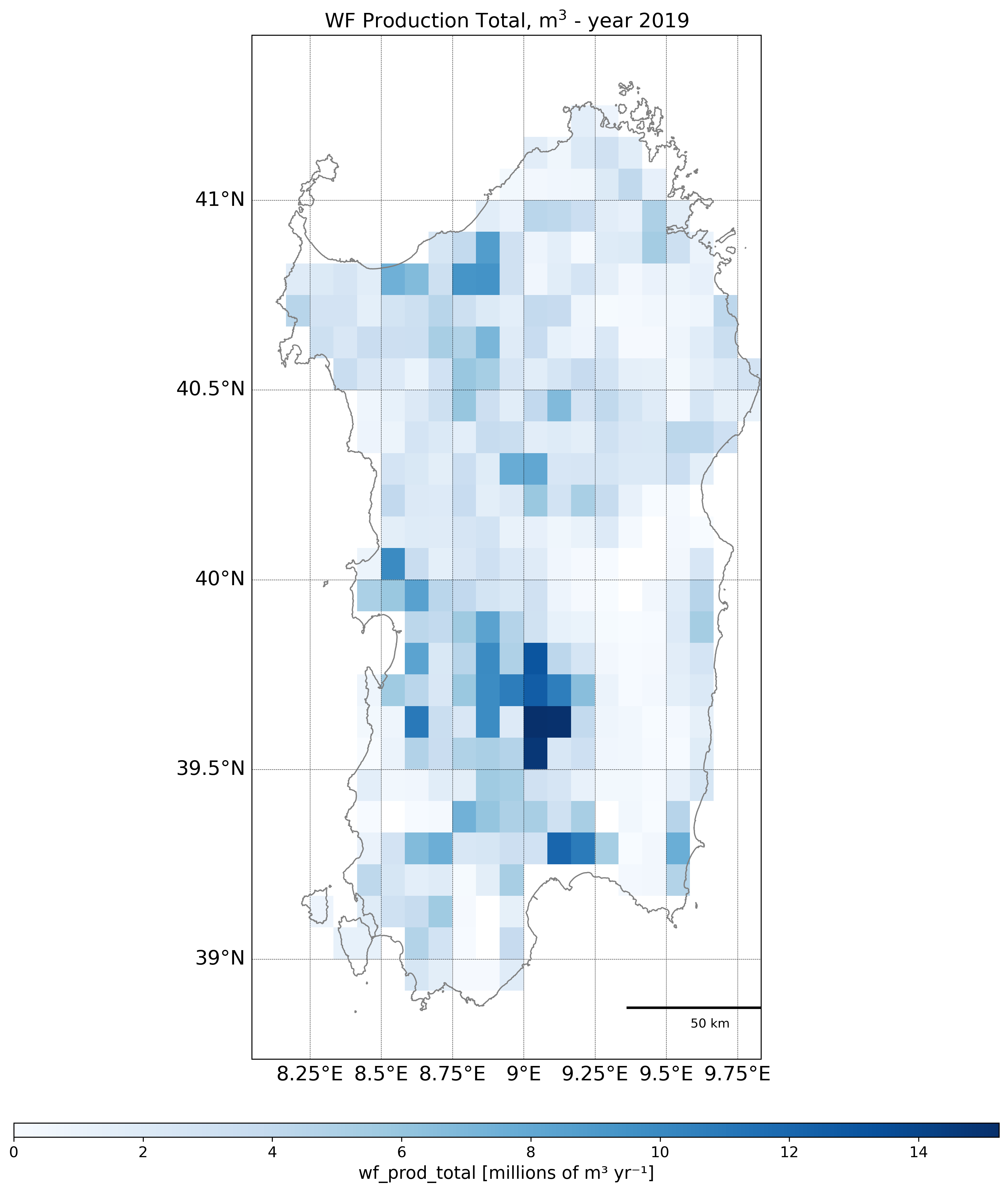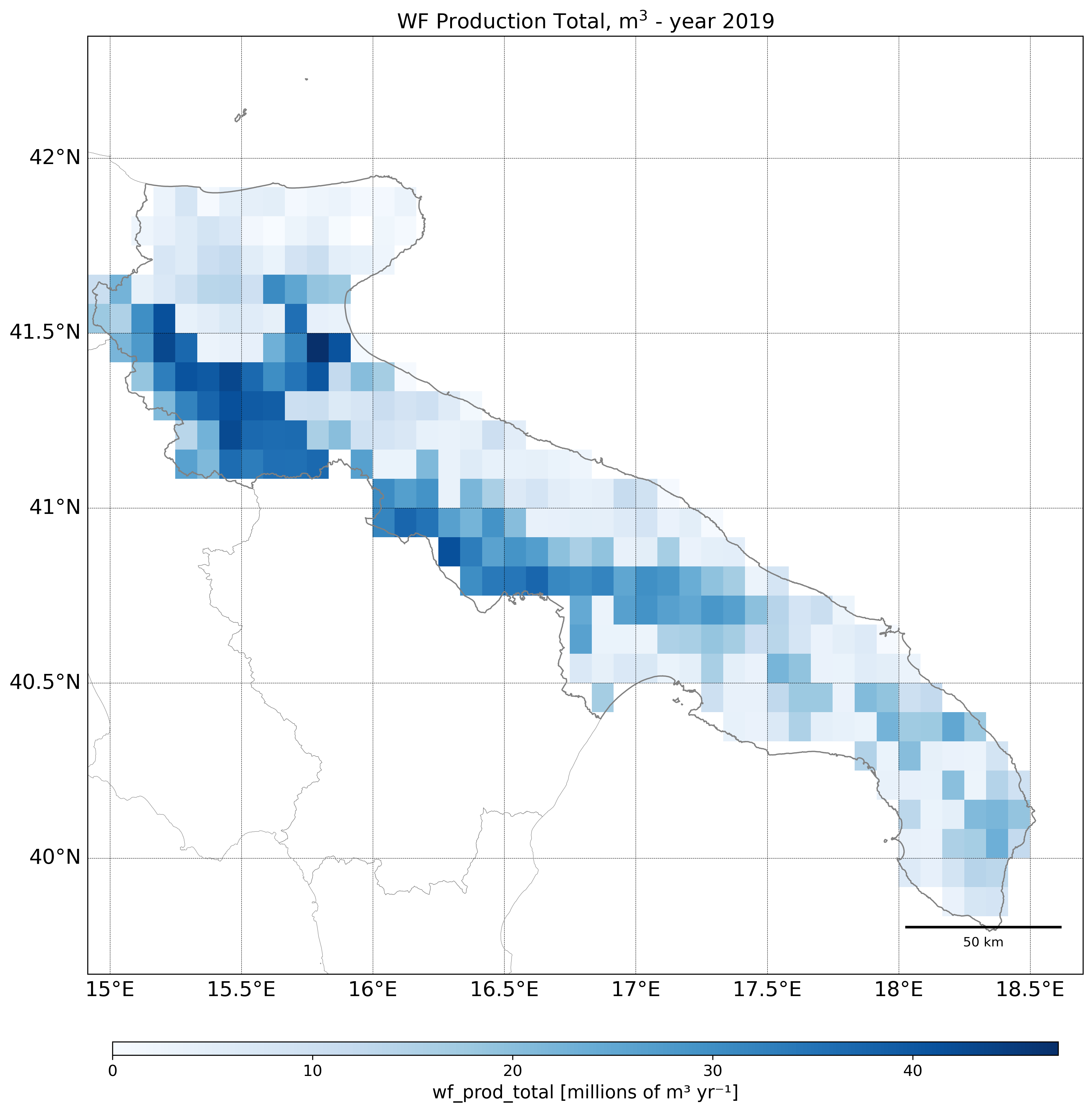 Regional Isometric Maps for Italy showing Blue Irrigated Water Footprint