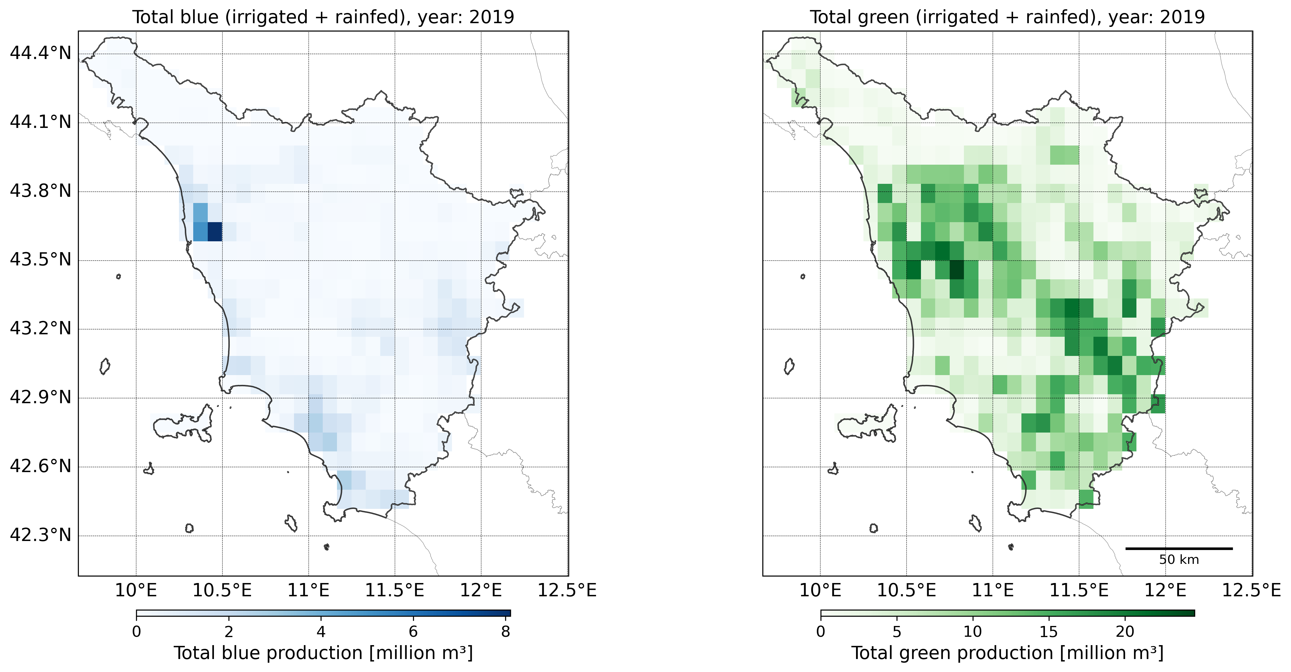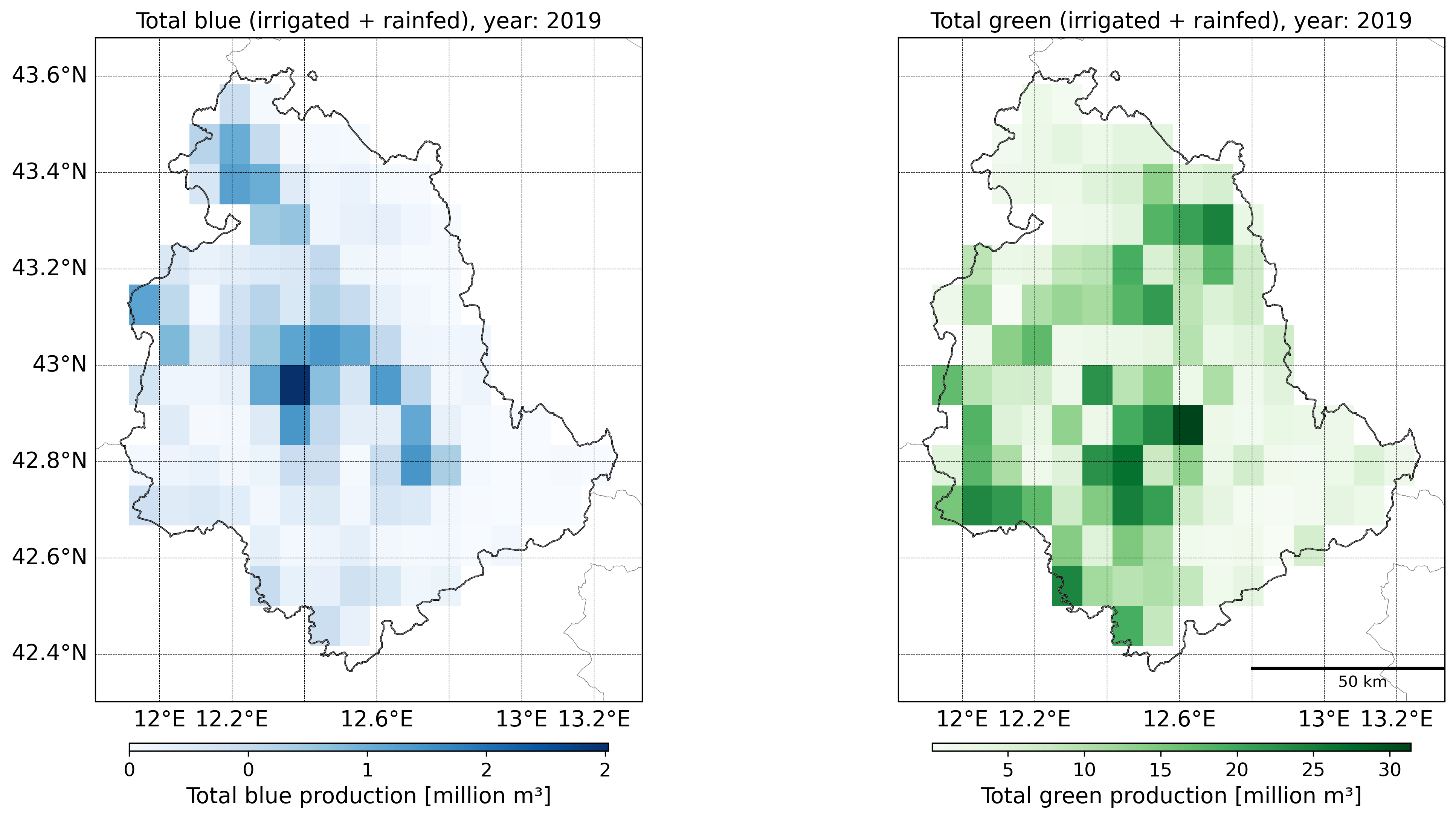 Regional Total blue , total Green and total (blue+green) water footprint of production
