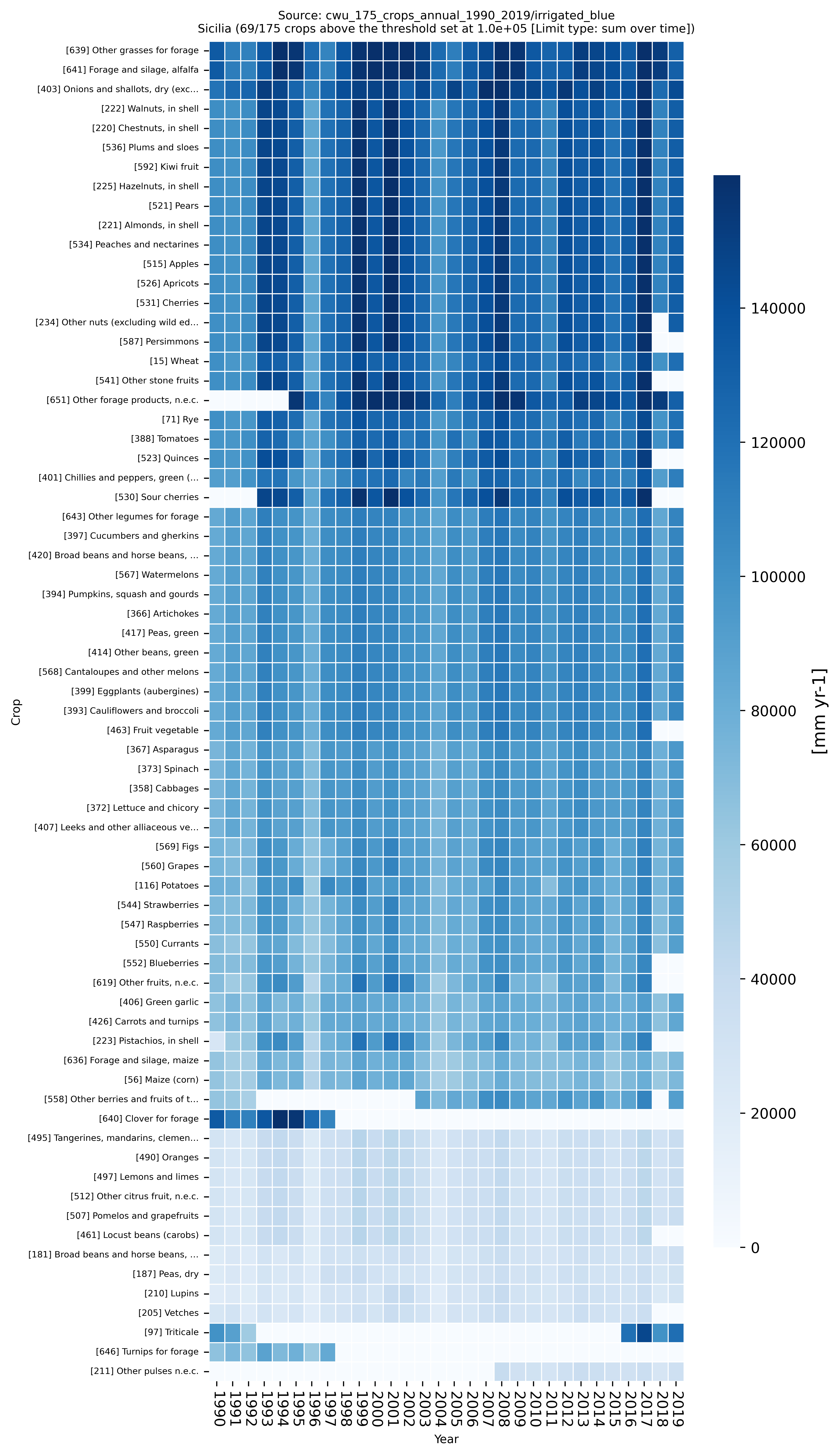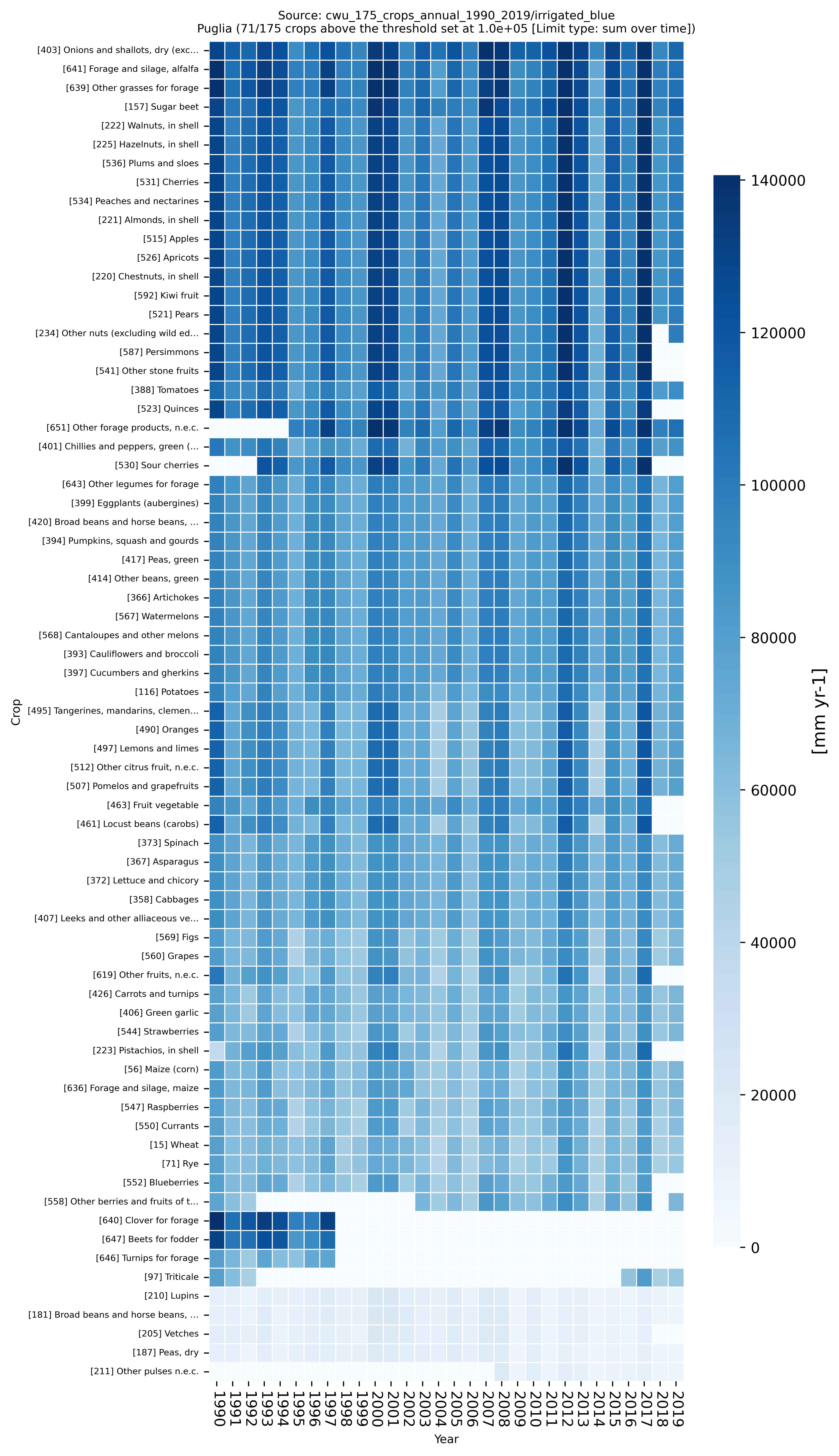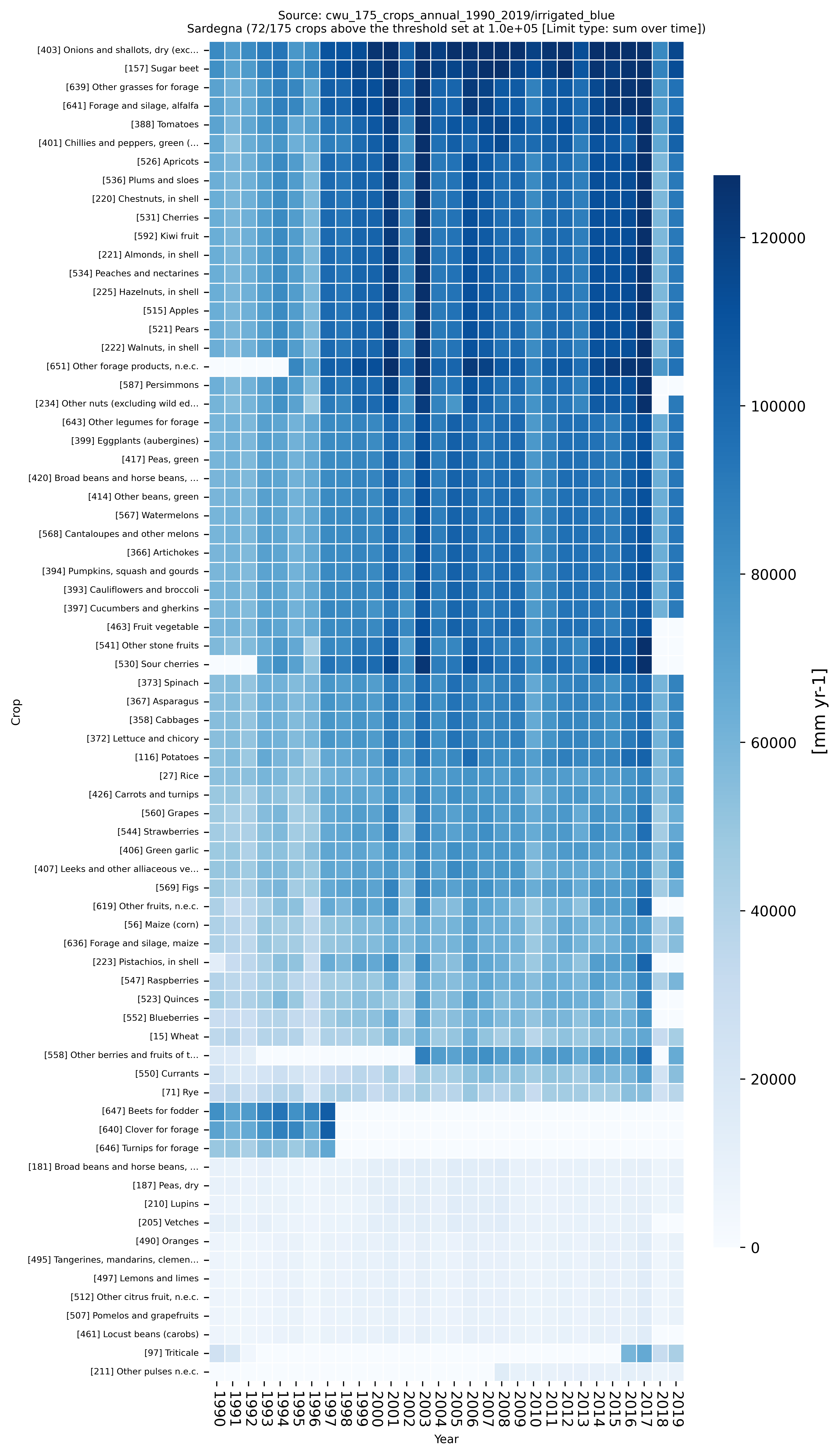 Crops irrigation intensity per region Heatmaps over Time